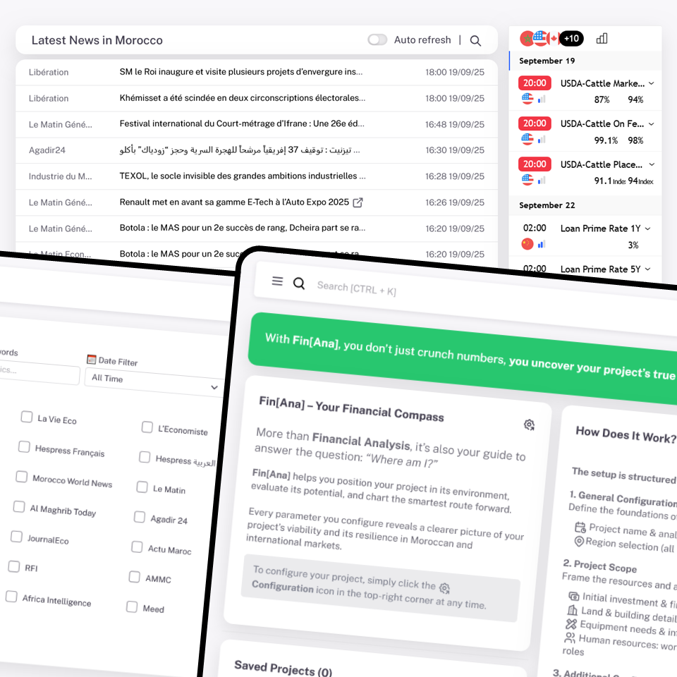 Beyond advisory services, Smart.by designs, builds, and operates innovative digital platforms that strengthen Morocco’s investment ecosystem and empower entrepreneurs. Each project reflects our vision: combining data-driven insights, cutting-edge technology, and local expertise to unlock new opportunities.